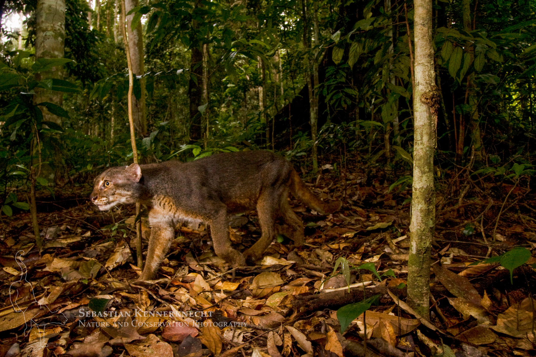 Bay Cat (Pardofelis badia) gray morph male in lowland rainforest, Tawau Hills Park, Sabah, Borneo, Malaysia
